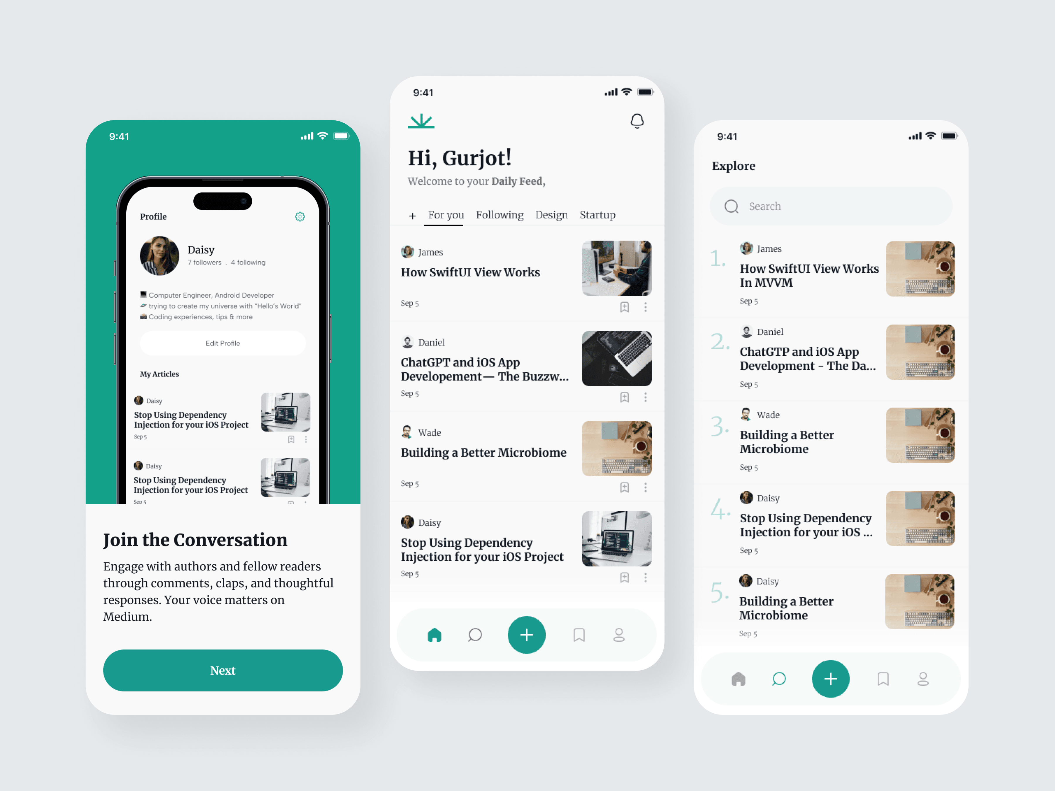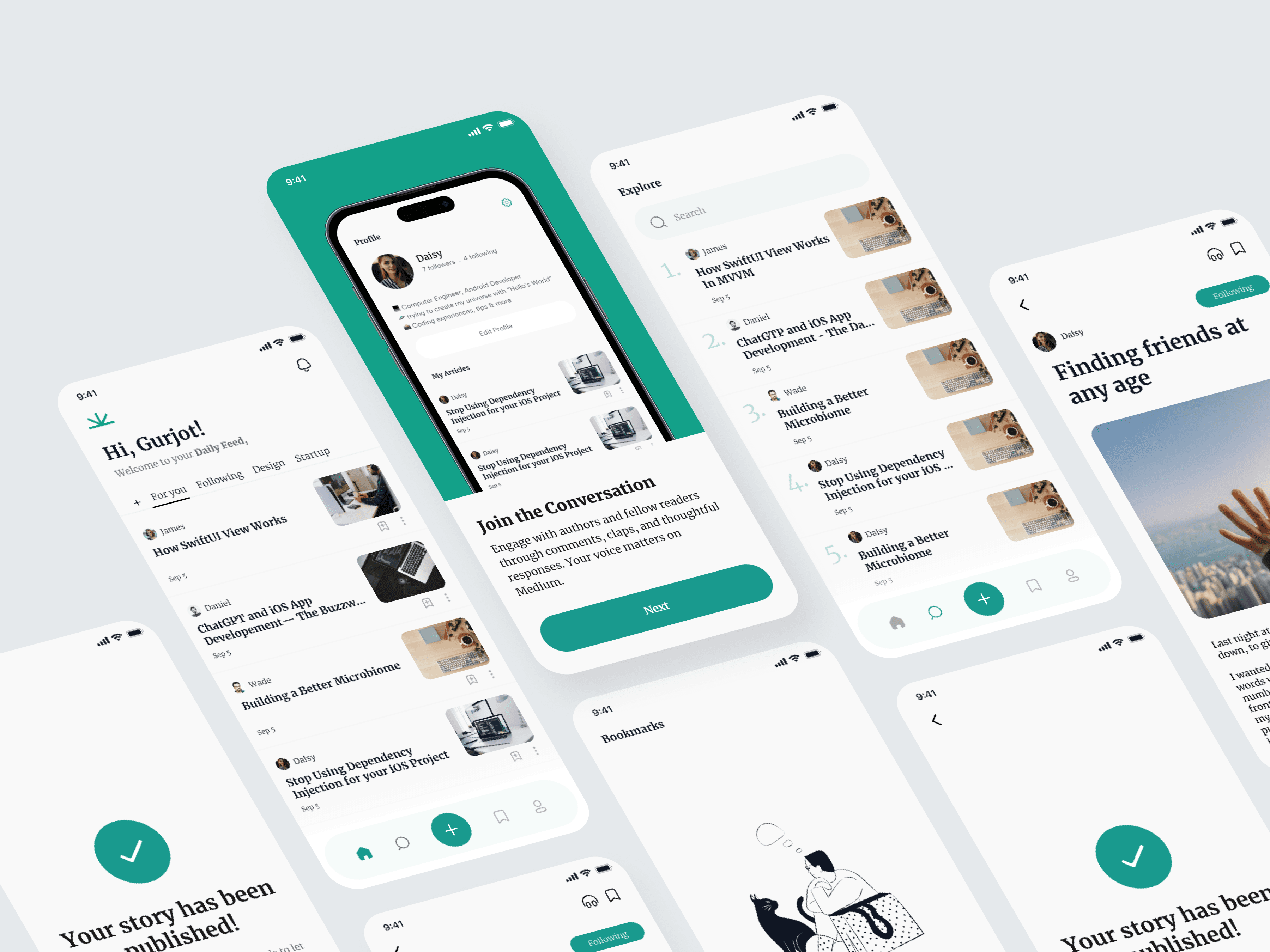 This project explores a modern redesign of a reading and publishing platform focused on writers, developers, and tech enthusiasts. The goal was to craft a clean, calm, and reader-first experience, with improved discoverability, intuitive navigation, and a more personalized daily feed. My design process centered around simplifying how users browse content, follow authors, save articles, and manage their profile.