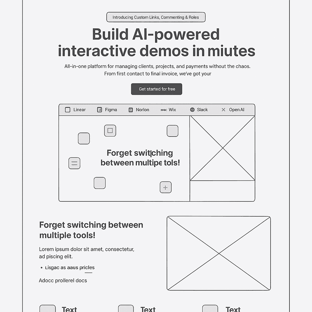 "Build AI-powered interactive demos in minutes."Subtext that communicates workflow reduction